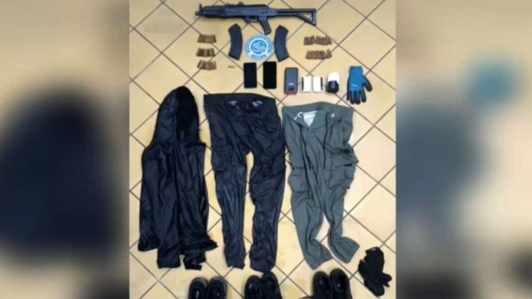 Ακολούθησε έρευνα στη μισθωμένη κατοικία, όπου εντοπίστηκε o κρατούμενος των φυλακών Λάρισας, ο οποίος επιχείρησε να διαφύγει χωρίς επιτυχία. Στο εσωτερικό του σπτιού βρέθηκαν και κατασχέθηκαν ένα πολεμικό τυφέκιο τύπου καλάσνικοφ, δύο γεμιστήρες και 57 φυσίγγια.