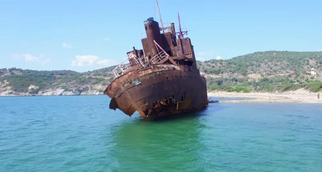 Ένα από τα πιο εμβληματικά σημεία της Λακωνίας αλλάζει οριστικά μορφή, καθώς οι άνεμοι που πνέουν στην περιοχή, η αλμύρα της θάλασσας και ο χρόνος χαράζουν διαρκώς τα σημάδια τους πάνω στο μεταλλικό σκαρί του.