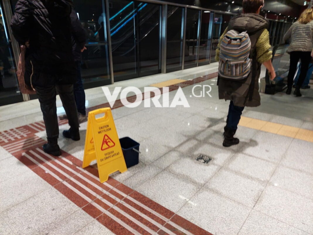 - Οι εργαζόμενοι στο Μετρό τοποθέτησαν ειδικές σημάνσεις και κουβάδες για τη συλλογή των νερών, προκειμένου να διασφαλίσουν την ασφάλεια των επιβατών.