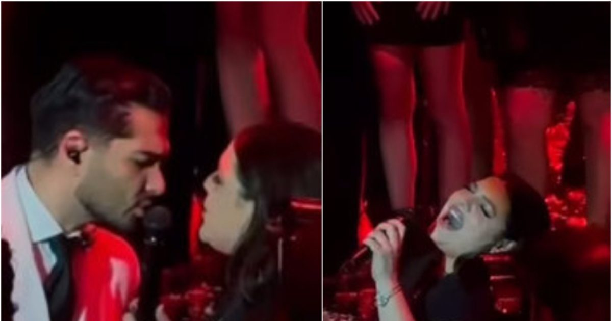 Οι θαμώνες του νυχτερινού κέντρου σήκωσαν την κάμερα του κινητού τους καταγράφοντας την παρουσιάστρια του Mega στο ντούετο με τον τραγουδιστή.