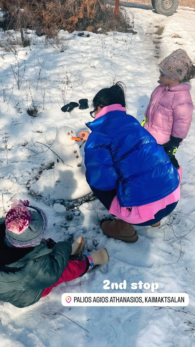 • Η οικογένεια πραγματοποίησε road trip σε περιοχές όπως η Έδεσσα και ο Άγιος Αθανάσιος, απολαμβάνοντας ποιοτικό χρόνο μαζί, παιχνίδια στο χιόνι και επισκέψεις σε γραφικά χωριά.