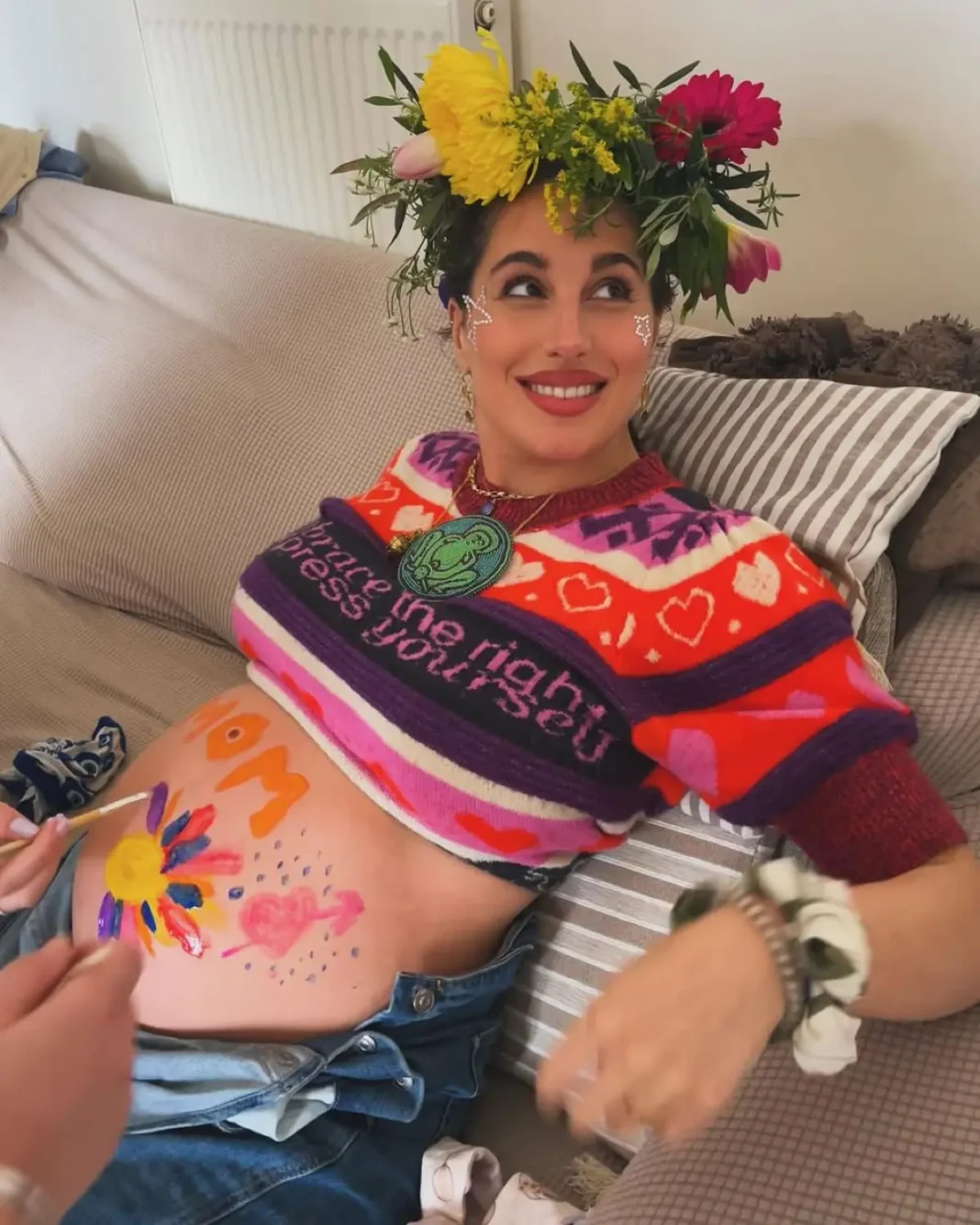 Παυλίνα Βουλγαράκη: Στόλισε την εγκυμονούσα κοιλίτσα της με χρώματα και λουλούδια στα μαλλιά