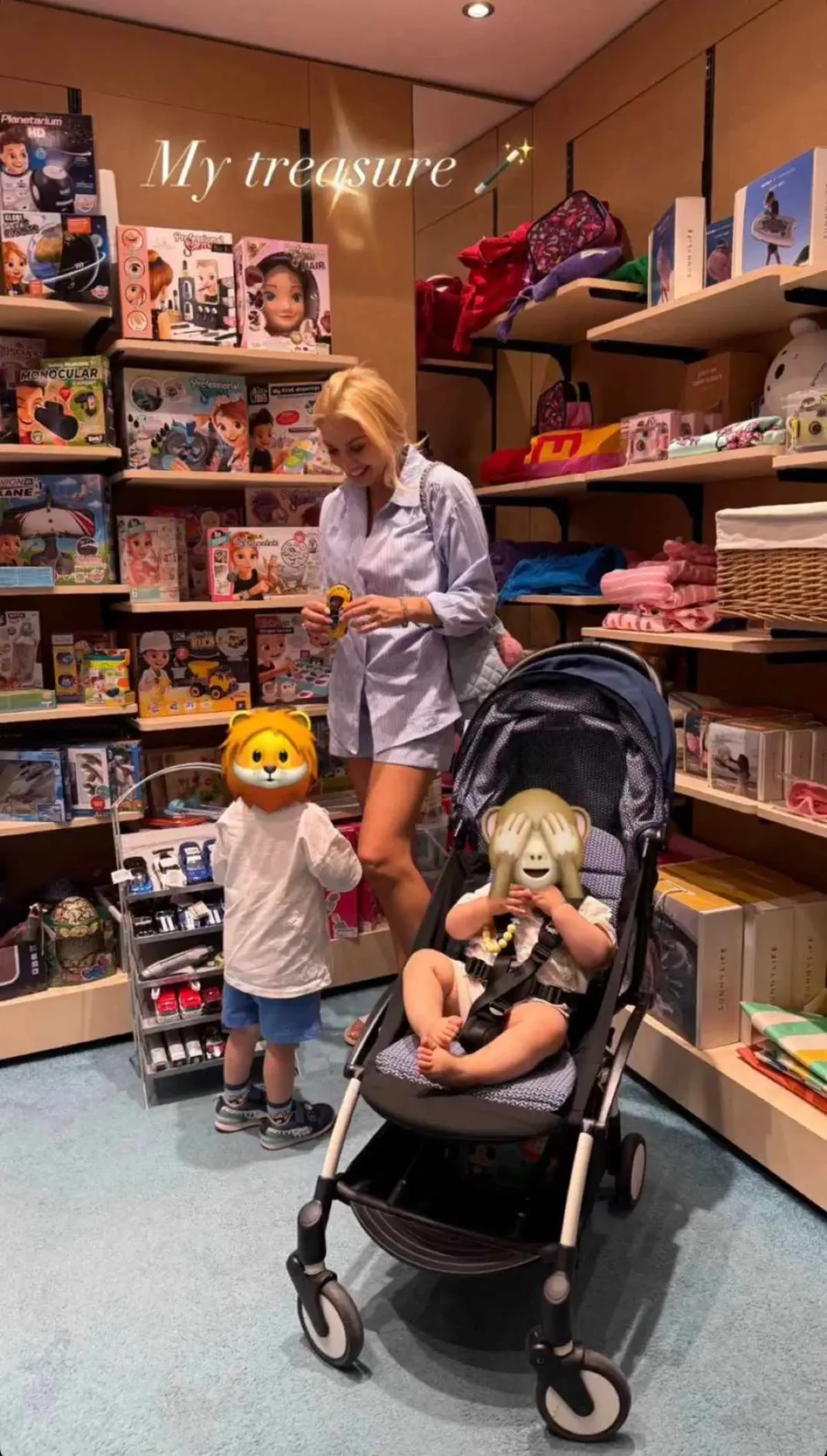 Η παρουσιάστρια ποζάρει μέσα σε κατάστημα με παιδικά, κρατώντας ένα παιχνίδι, το οποίο και δείχνει στο ένα αγόρι της, ενώ το δεύτερο είναι στο καροτσάκι του: «Ο θησαυρός μου», έγραψε στη λεζάντα η Κωνσταντίνα Σπυροπούλου, που έχει δηλώσει επανειλημμένα πόσο πολύτιμα είναι τα παιδιά της για εκείνη.