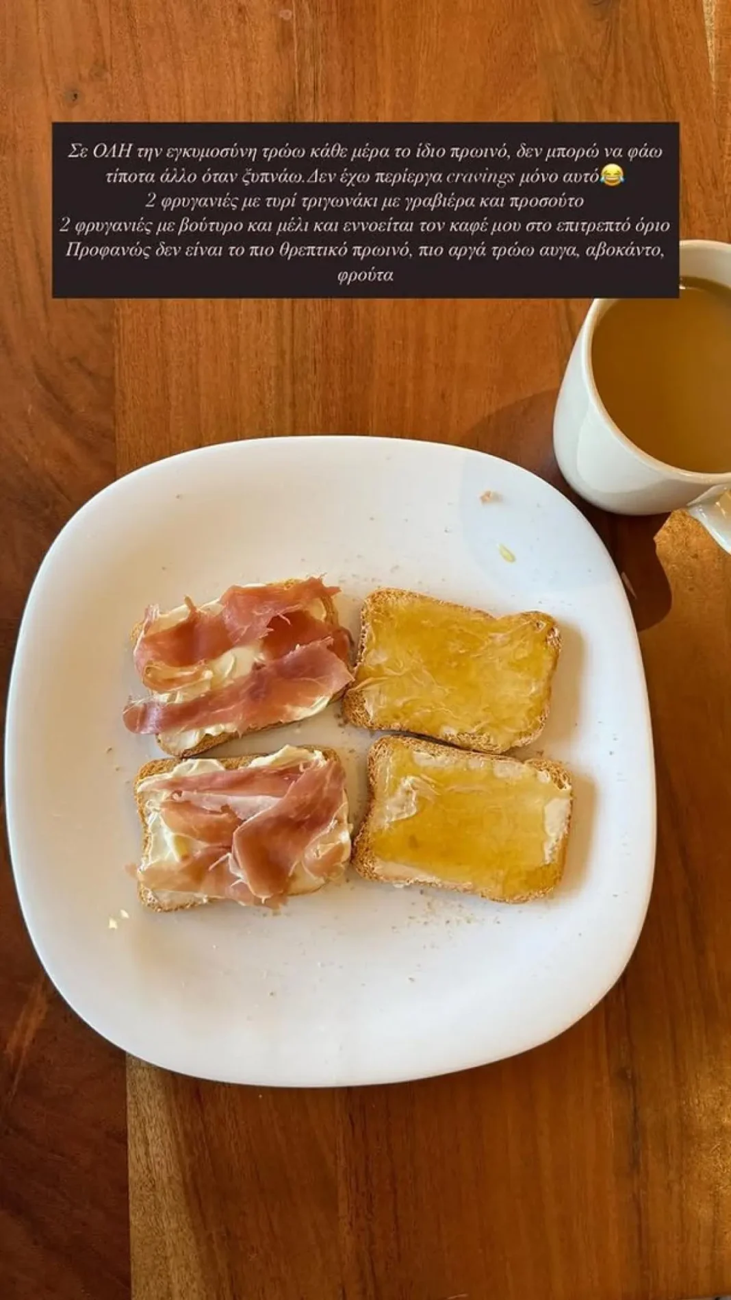 Το πρωινό της Άννας Θεοδωρίδη στην εγκυμοσύνη: Φρυγανιές, τυρί και… προσούτο!