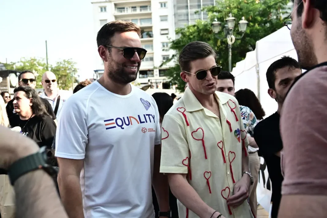 Ο Στέφανος Κασσελάκης και ο Τάιλερ Μακμπέθ στο Athens Pride