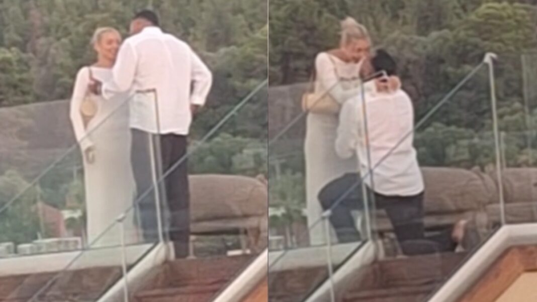 Ο ποδοσφαιριστής γονάτισε προσφέροντας στην εκλεκτή της καρδιάς του που χαμογελούσε και έλαμπε μέσα στο λευκό φόρεμά της ένα υπέροχο δακτυλίδι και της ζήτησε να γίνει γυναίκα του. Εκείνη συγκινημένη του είπε το «ναι», ενώ στην συνέχεια της πρόσφερε μια ανθοδέσμη με κόκκινα τριαντάφυλλα και αντάλλαξαν πολλά τρυφερά φιλιά στα χείλη.