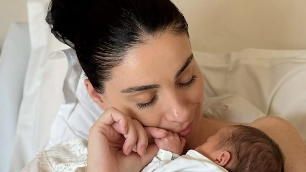 Στις φωτογραφίες, φαίνεται να κρατάει το μωρό στην αγκαλιά της, με βλέμμα γεμάτο τρυφερότητα και ανακούφιση, ενώ μαζί της βρίσκεται ο σύζυγός της, εμφανώς συγκινημένος.