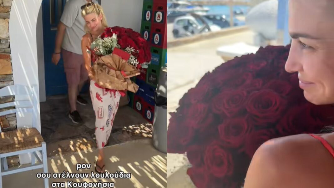 Μυστηριώδης θαυμαστής έστειλε τεράστια ανθοδέσμη με κόκκινα τριαντάφυλλα στη Βάλια Χατζηθεοδώρου κατά τη διάρκεια των διακοπών της στα Κουφονήσια