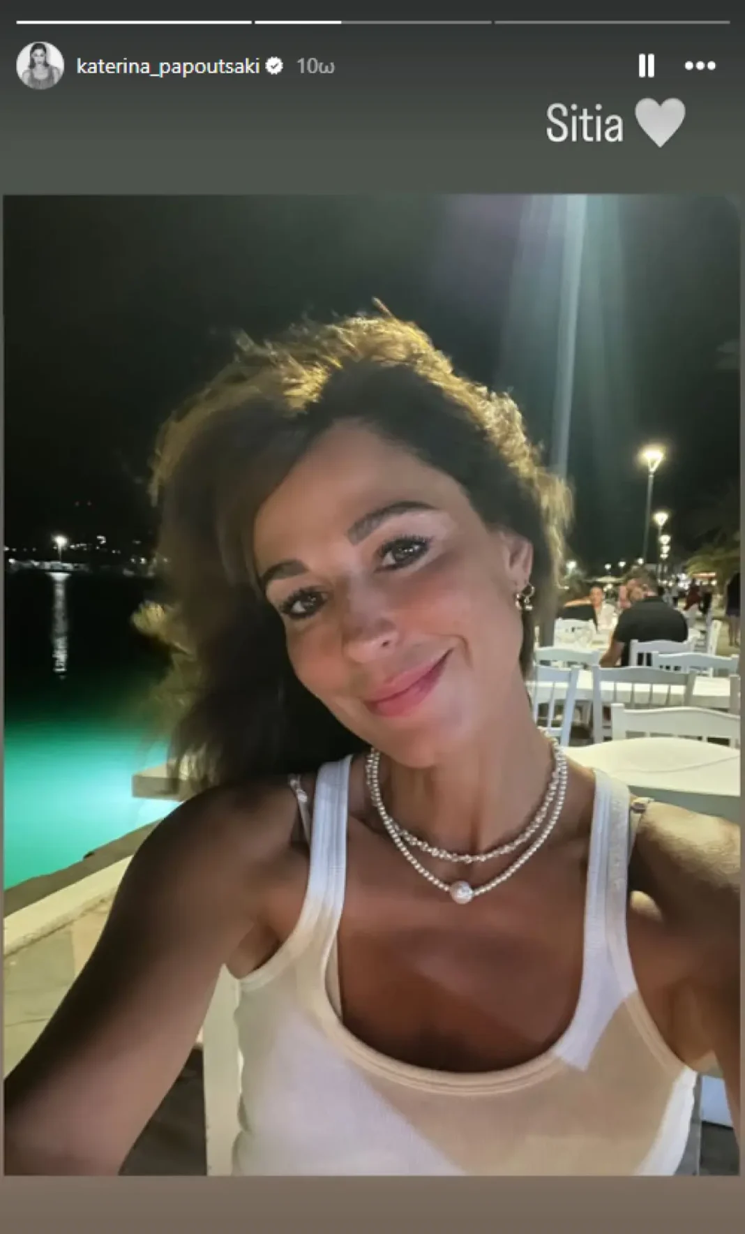 Την Πέμπτη 31 Ιουλίου το βράδυ, δημοσίευσε η ίδια φωτογραφίες στον προσωπικό της λογαριασμό στο Instagram από εκεί, από την βόλτα που έκαναν δίπλα στη θάλασσα συγκεκριμένα, απολαμβάνοντας το γεύμα τους σε ταβερνάκι.