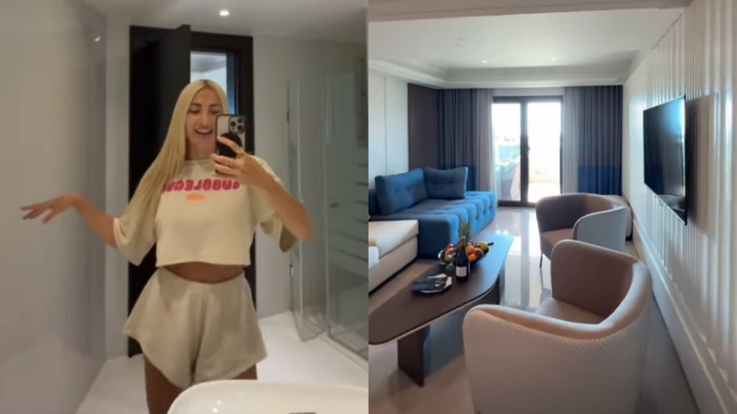 Η γνωστή influencer μοιράστηκε στιγμές από τη διαμονή της στα social media, δείχνοντας την κομψή διακόσμηση και τις ανέσεις του δωματίου.