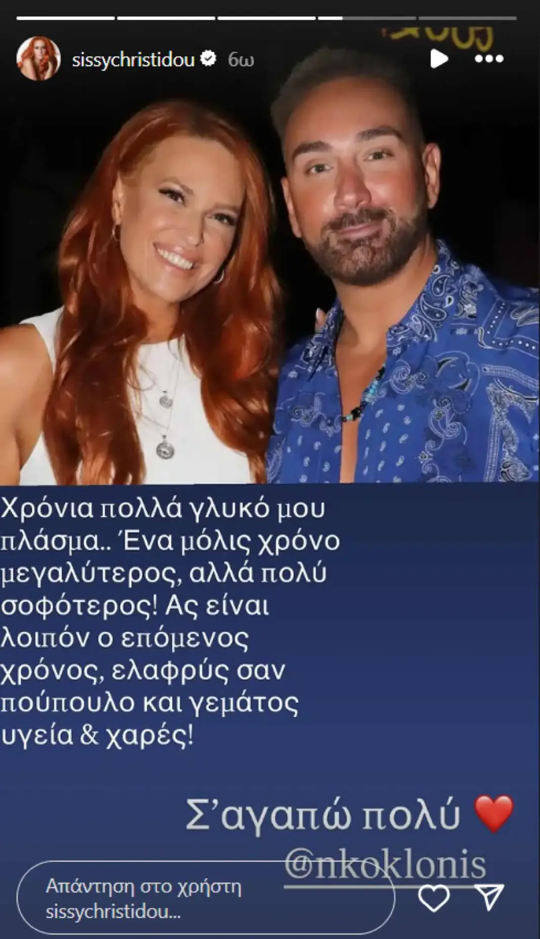 Οι ευχές της Σίσσυς Χρηστίδου για τα γενέθλια του Νίκου Κοκλώνη