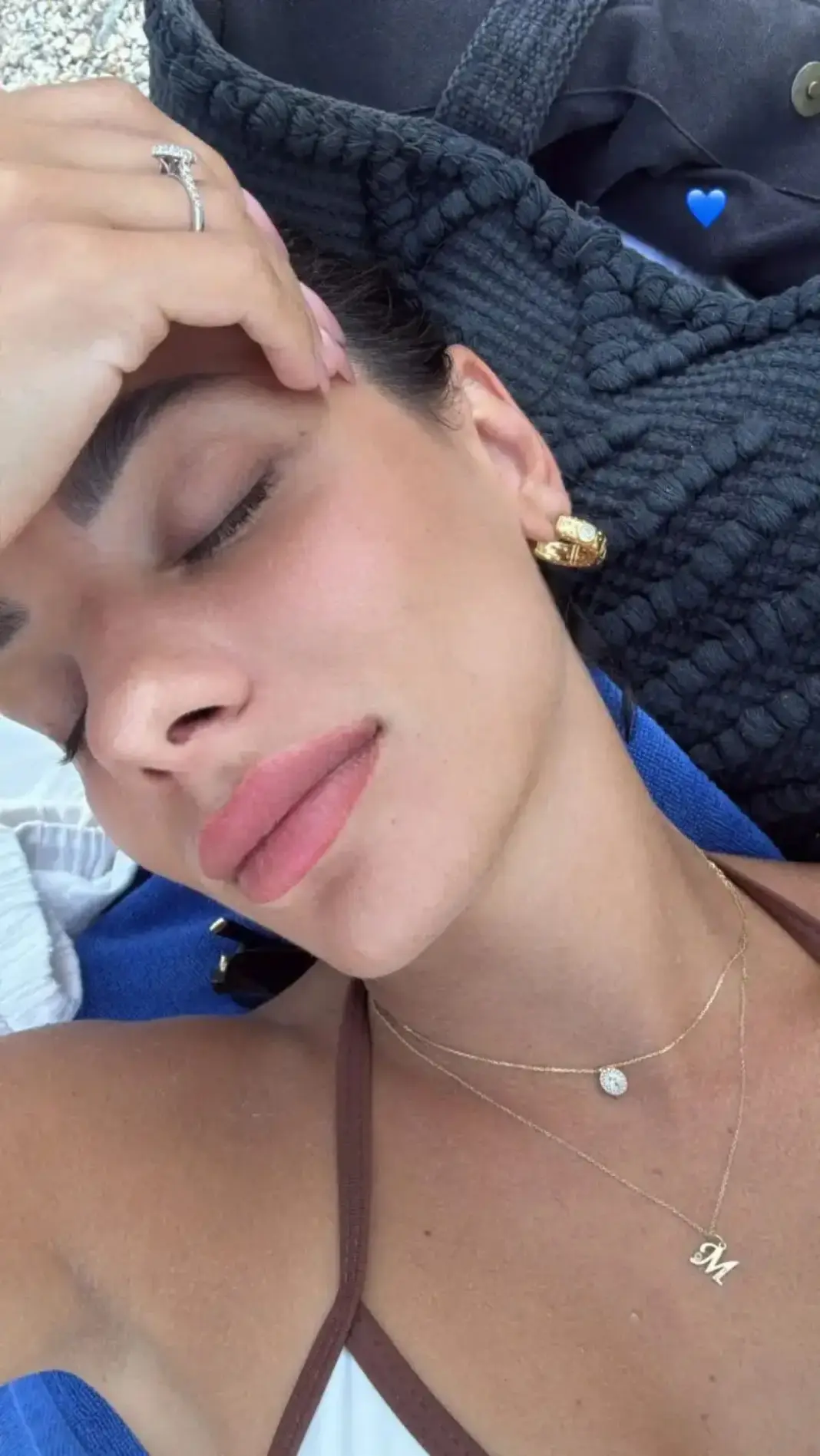 Η Influencer μοιράστηκε στα Instagram Stories της μια φωτογραφία από την παραλία, με το εντυπωσιακό μονόπετρο να κλέβει την παράσταση.