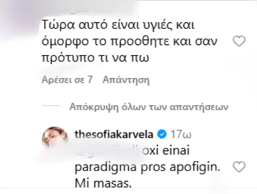 Τα αρνητικά σχόλια και οι απαντήσεις της Σοφίας Καρβέλα