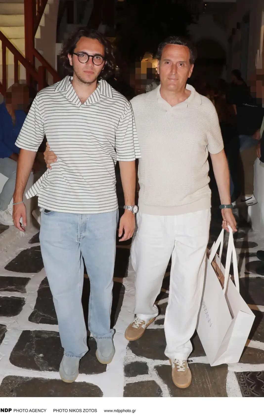 Πριν από κάποια 24 ωστόσο, ο φωτογραφικός φακός του dedomeno.gr τον συνάντησε κατά τη διάρκεια των καλοκαιρινών του διακοπών στο νησί των ανέμων, στη Μύκονο, μαζί με τον γιο του. Οι δυο τους περπατούσαν μαζί στα Ματογιάννια, σε βραδινή τους βόλτα και χαμογελούσαν στην κάμερα, συνεχίζοντας ανενόχλητοι την πορεία τους.
