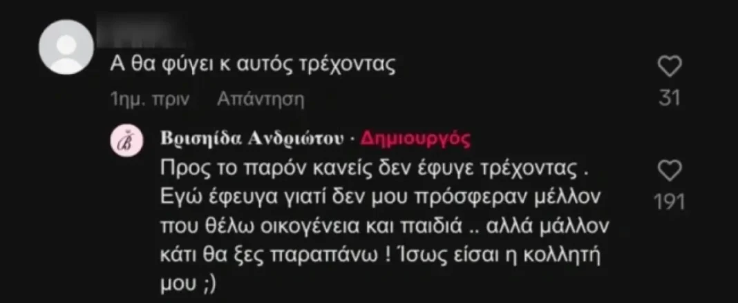 Το σχόλιο που δέχτηκε η Βρισηίδα Ανδριώτου και η απάντησή της