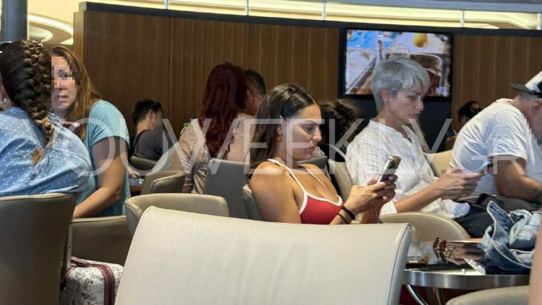 Κατά τη διάρκεια του ταξιδιού, ήταν φιλική και χαμογελαστή με όσους την αναγνώριζαν, ενώ συζητούσε με τον φίλο της και χαλάρωνε κοιτώντας το κινητό της.