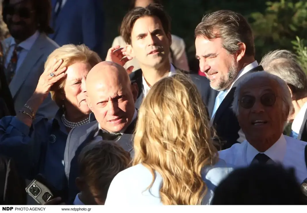 Ανάμεσα στους καλεσμένους ήταν και η αδερφή του γαμπρού, Χρυσή Βαρδινογιάννη, με τον σύζυγό της, Νικόλαο Ντε Γκρες.