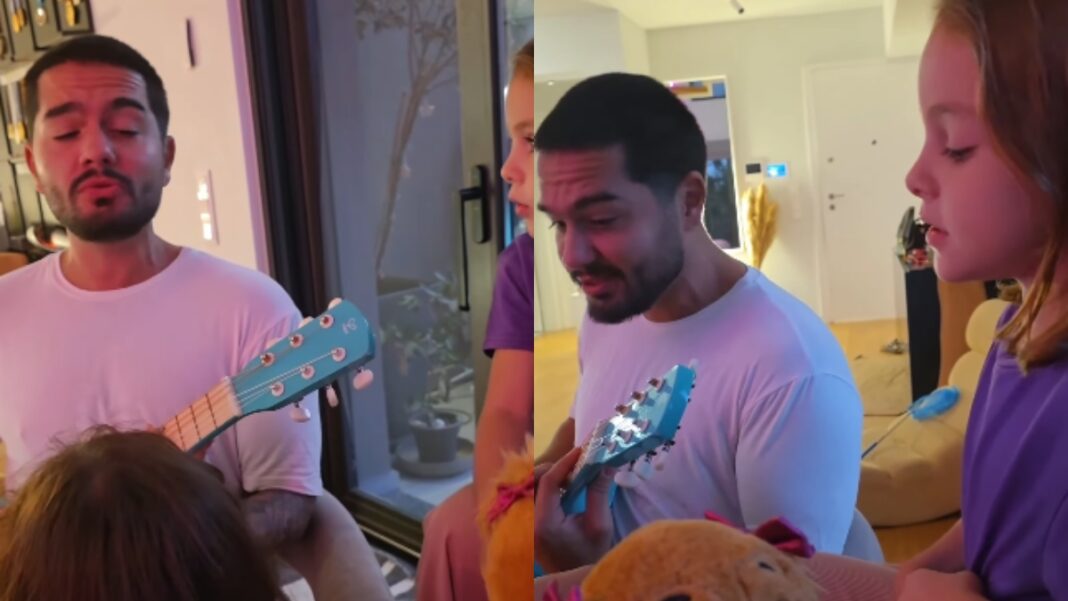 Ο Χρήστος Μάστορας, στενός φίλος του Λευτέρη Πετρούνια και της Βασιλικής Μιλλούση, μοιράστηκε μια συγκινητική στιγμή με τη βαφτιστήρα του, Σοφία, την οποία έχει βαφτίσει. Σε ένα βίντεο που δημοσίευσε η Μιλλούση στο Instagram, ο Μάστορας παίζει το τραγούδι «Αστερομάτα» με γιουκαλίλι, ενώ η Σοφία και η αδερφή της τον συνοδεύουν, διασκεδάζοντας μαζί του. Ο καλλιτέχνης εξέφρασε τη συγκίνησή του για την όμορφη αυτή στιγμή με ένα τρυφερό σχόλιο κάτω από την ανάρτηση.