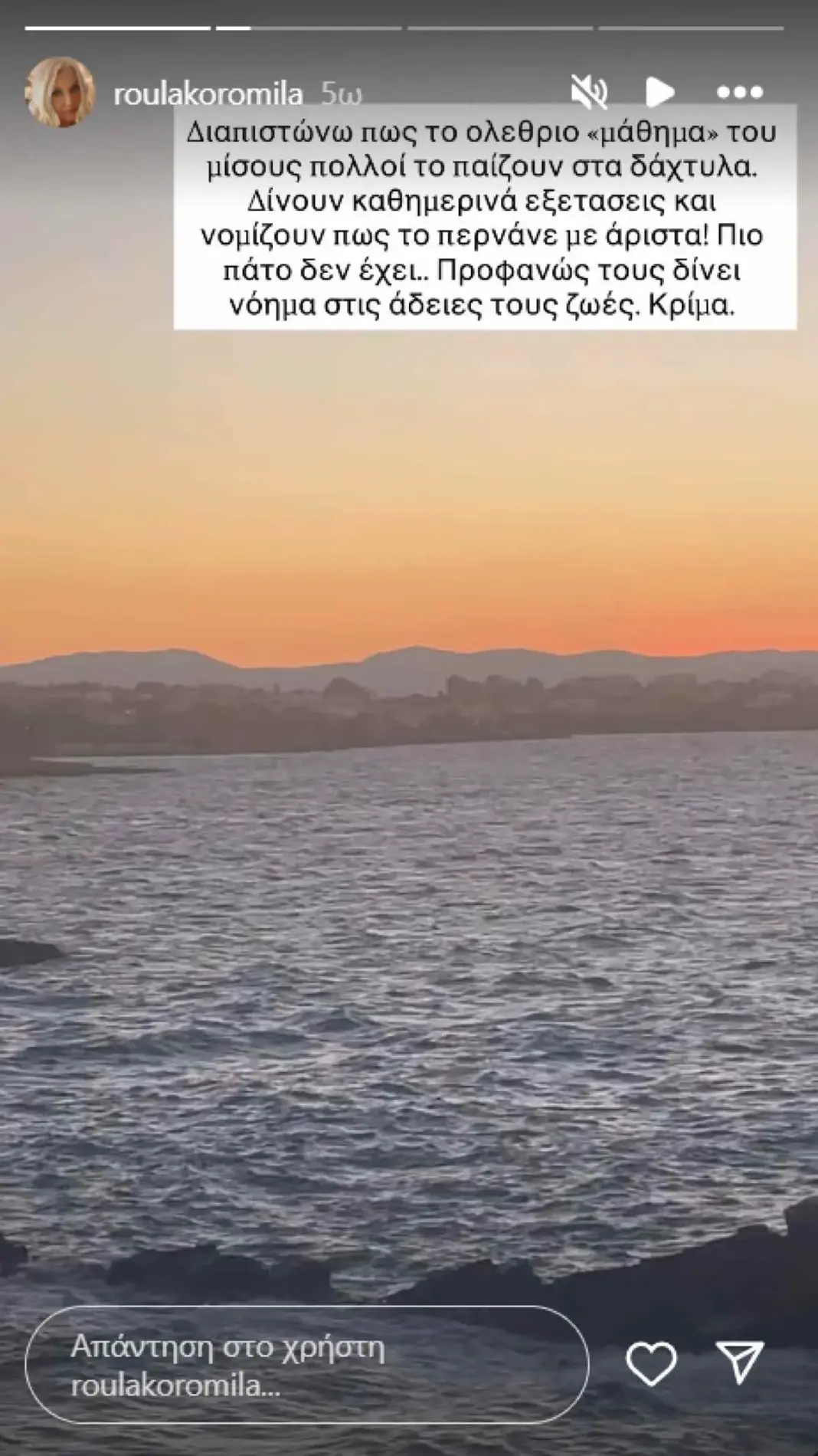 Η Ρούλα Κορομηλά ξεσπά στο Instagram