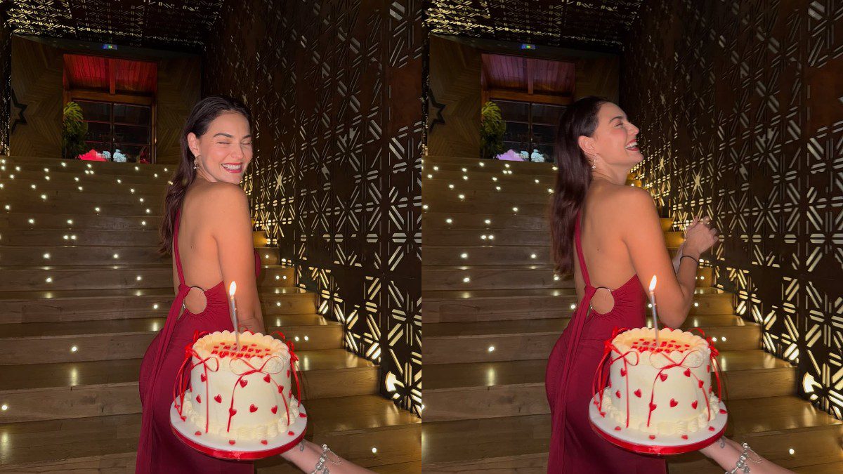 Φορώντας ένα κόκκινο στενό φόρεμα με ανοιχτή πλάτη, γιόρτασε τα 29α γενέθλιά της, σβήνοντας ένα κεράκι σε μια πολύ εντυπωσιακή τούρτα σε λευκό και κόκκινο χρώμα.