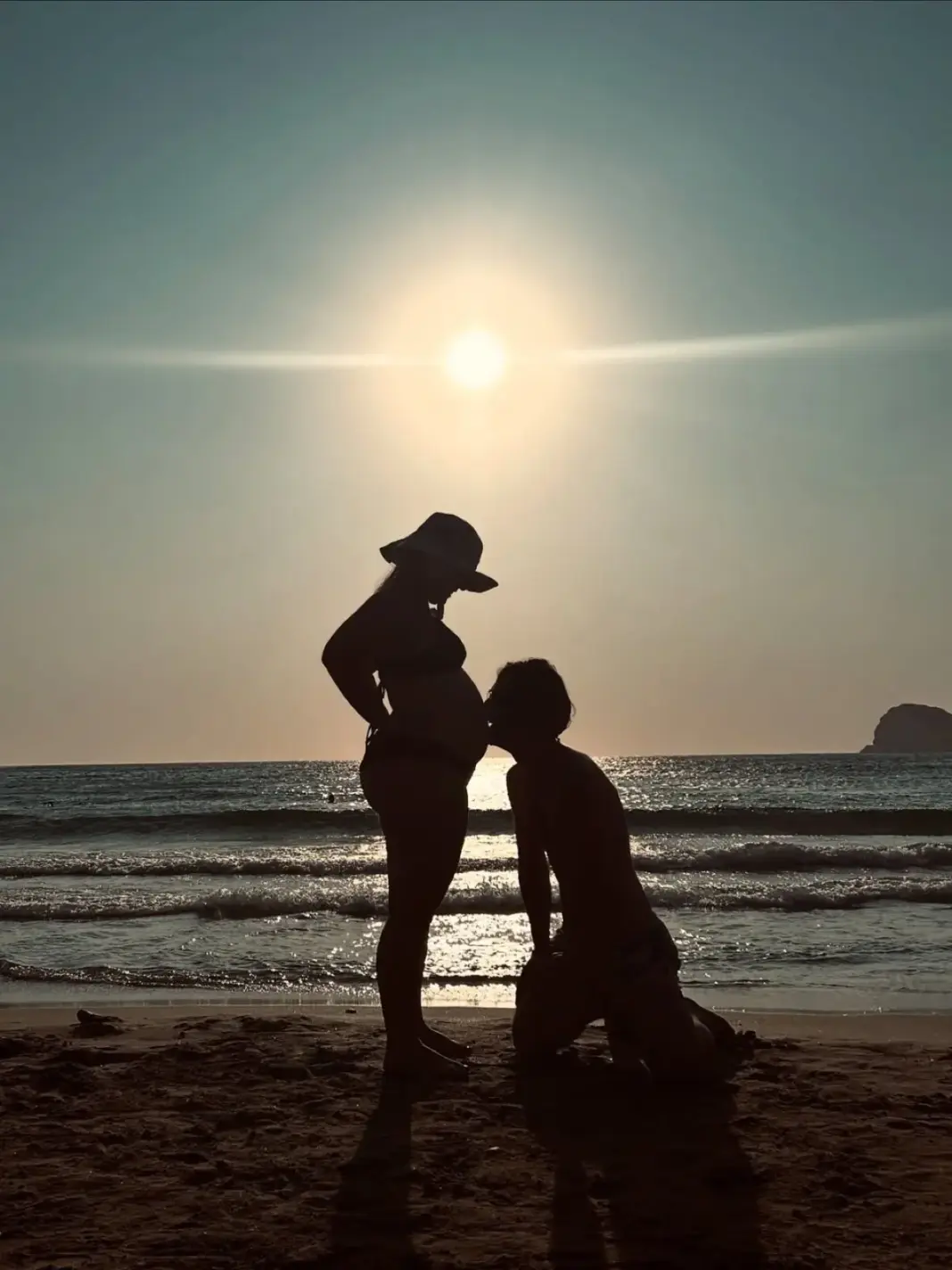 Μοιράστηκε μια τρυφερή φωτογραφία από το καλοκαίρι στη Σύρο, όπου ποζάρει με φουσκωμένη κοιλιά στην παραλία, ενώ ο σύζυγός της τη φιλά τρυφερά. Στη λεζάντα, με χιούμορ και συγκίνηση, αναφέρθηκε στην προσμονή της γέννησης.
