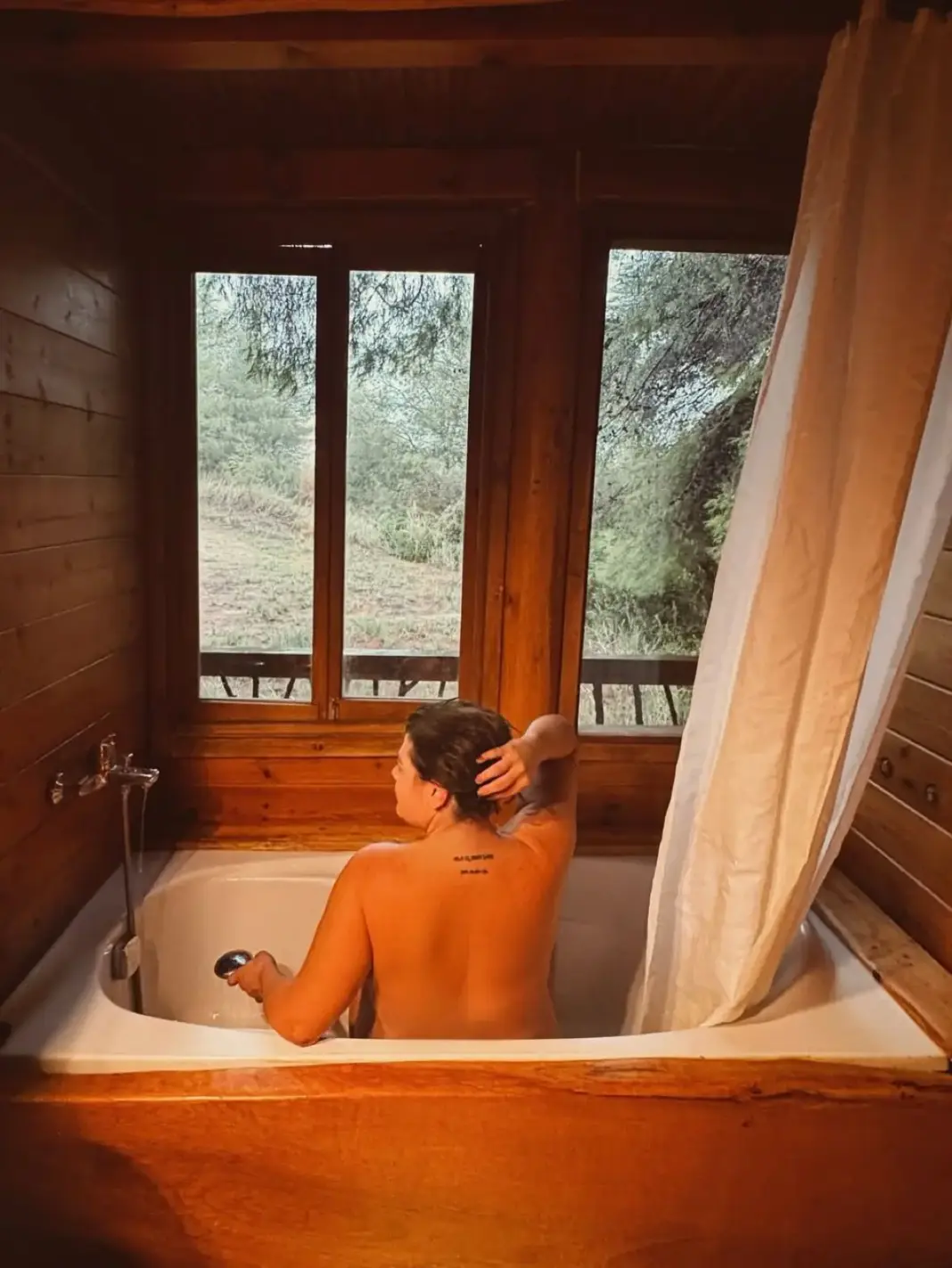 Την Πέμπτη 23 Οκτωβρίου, μάλιστα, πέρα από το ίδιο το δεντρόσπιτο και τον χώρο τριγύρω, μοιράστηκε με τους διαδικτυακούς της φίλους και μία διαφορετική φωτογραφία. Η ηθοποιός και παρουσιάστρια πόζαρε στην μπανιέρα του δωματίου της, μπροστά από το παράθυρο, εντελώς γυμνή, γυρνώντας την πλάτη της στον φακό.