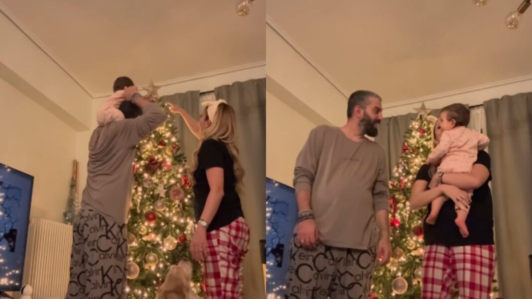 Η ίδια δημοσίευσε ένα βίντεο στον προσωπικό της λογαριασμό στο Instagram δείχνοντας το πελώριο δέντρο τους και τις τρυφερές αγκαλιές και τα φιλιά με τον καλό της και το μωρό τους όση ώρα στόλιζαν και το συνόδευσε με ένα πολύ τρυφερό μήνυμα στην λεζάντα.