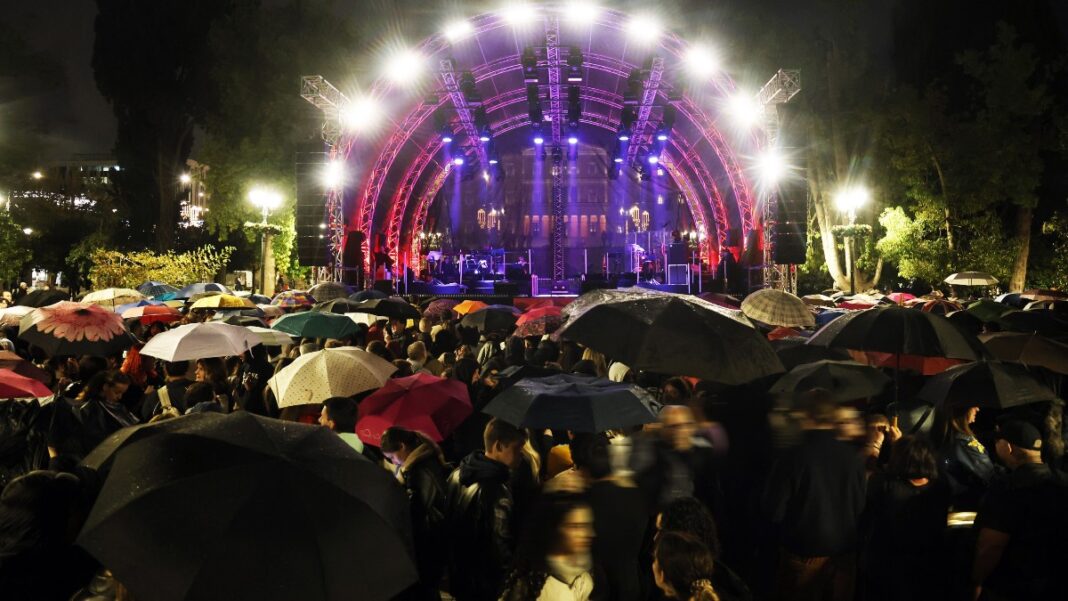 Φωταγώγηση του χριστουγεννιάτικου δέντρου στο Σύνταγμα παρά τη βροχή, με μουσική, Μουζουράκη και πολύ κέφι από τους Αθηναίους
