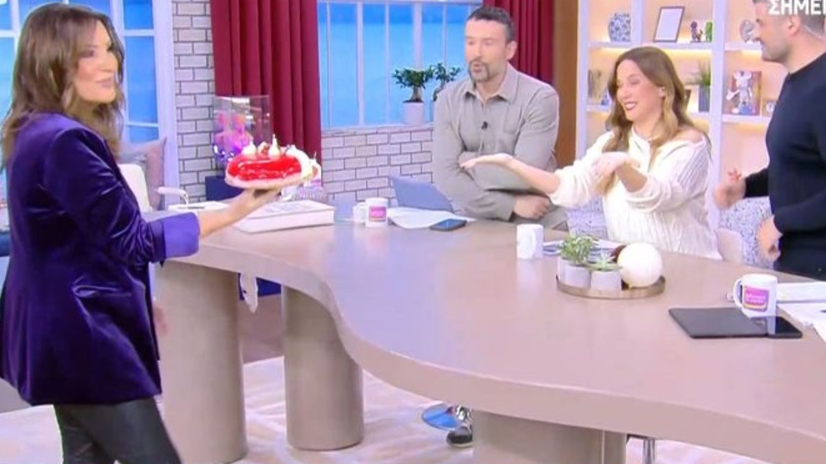 Κατά την διάρκεια λοιπόν της εκπομπής, η Ναταλία Γερμανού της εμφάνισε μια νόστιμη τούρτα και έσβησε το κεράκι, με τους συνεργάτες της να της εύχονται ό,τι επιθυμείς.