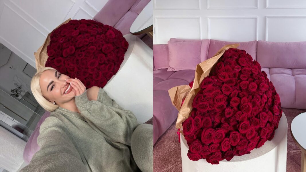 Η ίδια πάντως δείχνει να απολαμβάνει χωρίς ενοχές. Με χαμόγελο, cozy outfit και μια ανθοδέσμη που κυριολεκτικά γεμίζει το σαλόνι, η εικόνα λέει περισσότερα από χίλιες λέξεις. Ένας χρόνος σχέσης, 365 μέρες, 365 τριαντάφυλλα…
