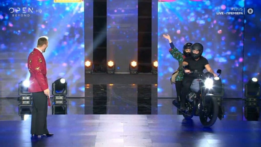 H Βίκυ Σταυροπούλου καθυστέρησε να φτάσει στο show λόγω της απογευματινής παράστασής της στο θέατρο και λίγα λεπτά μετά την πρεμιέρα η γνωστή ηθοποιός εισέβαλε στο πλατό με μια πελώρια μηχανή την οποία οδηγούσε ο Αλέξης Γεωργούλης, ο οποίος είναι ο αποψινός guest κριτής στο φαντασμαγορικό show.