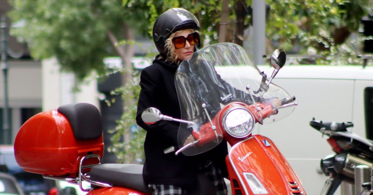 Όπως θα δεις στις φωτογραφίες, η τραγουδίστρια πήγε με το σκούτερ της, ήταν απασχολημένη με το κινητό της και έδειχνε ιδιαίτερα ευδιάθετη