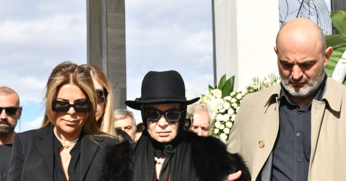 Η Ελένη Μαρούδα έφτασε στο νεκροταφείο ντυμένη στα μαύρα, εμφανώς καταβεβλημένη, μη μπορώντας να πιστέψει ότι έφυγε τόσο ξαφνικά ο σύζυγός της.
