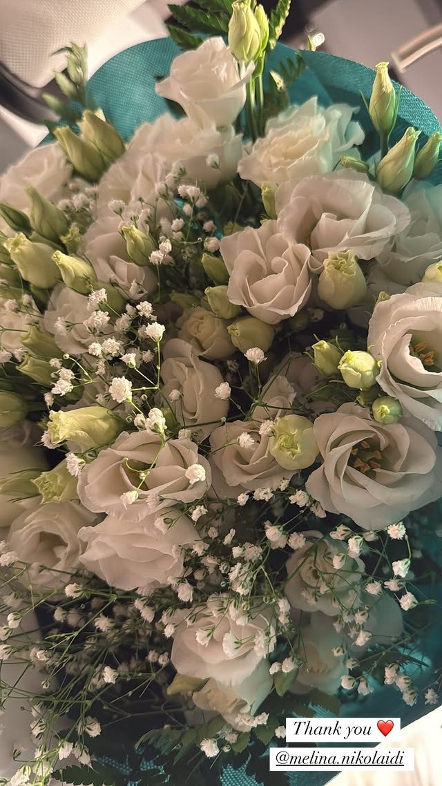 Συγκεκριμένα, η Μελίνα Νικολαΐδη του έστειλε μια ανθοδέσμη με 14 λευκά τριαντάφυλλά όσα και τα χρόνια που έχει περάσει ο σύντροφός της μακριά από τη γιαγιά του.