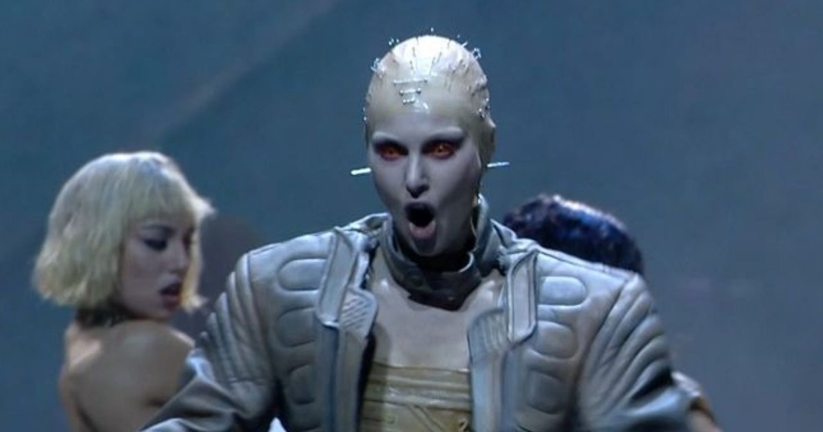 - Η Τάμτα παρουσίασε μια ανατρεπτική εμφάνιση με δημιουργίες της Soraya Ontori, σε ένα σκηνικό εμπνευσμένο από το έργο «1984» του George Orwell.