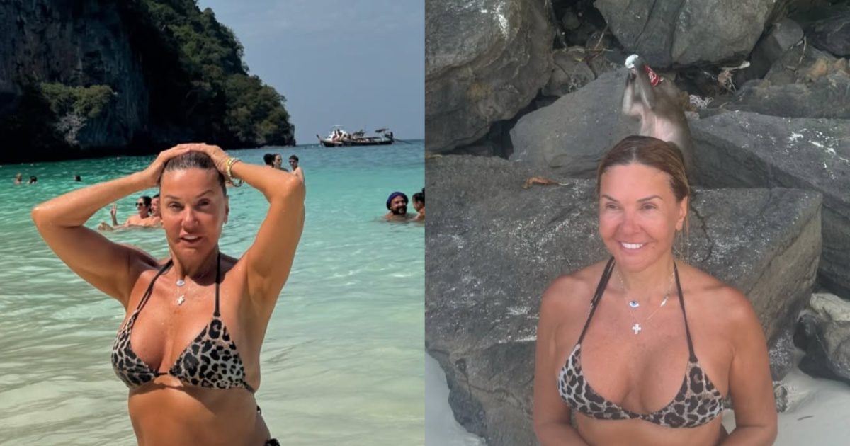 ταξίδι, ποζάροντας από τα νησιά Phi Phi στην παραλία. Η Χριστίνα Παππά μοιράστηκε σχετικά στιγμιότυπα στα social media με τους διαδικτυακούς της φίλους να σχολιάζουν τις πόζες της με animal print μαγιό της.