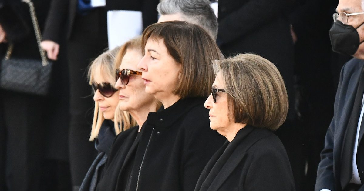 Η Δάφνη Σημίτη και οι κόρες της αποχαιρετούν συγκινημένα τον Κώστα Σημίτη στη Μητρόπολη Αθηνών, με την εξόδιο ακολουθία να τελείται στις 12:00.