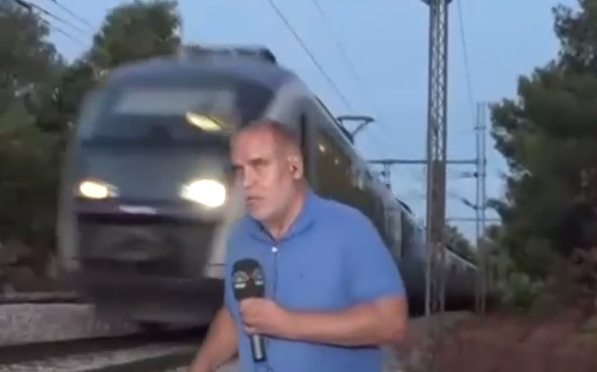 - Ο Γκούμας διακόπτει ζωντανή μετάδοση καθώς περνάει το τρένο κοντά του.