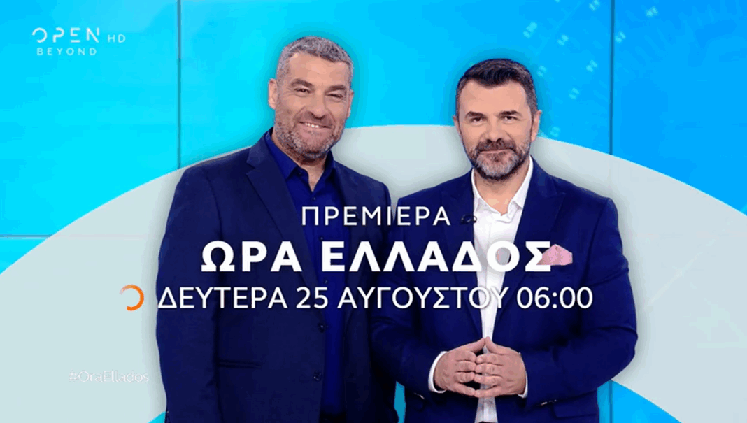 Η πρωινή ενημερωτική εκπομπή «Ώρα Ελλάδος» στο κανάλι OPEN επιστρέφει τη νέα σεζόν με παρουσιαστές τον Μάνο Νιφλή και τον Γιάννη Κολοκυθά. Από τις 25 Αυγούστου 2025, οι δύο δημοσιογράφοι θα ενημερώνουν καθημερινά τους τηλεθεατές για την επικαιρότητα στην Ελλάδα και διεθνώς, με ζωντανές συνδέσεις και ρεπορτάζ. Η ένταξη του Μάνου Νιφλή στο δυναμικό του καναλιού και η ανανέωση του συμβολαίου του Γιάννη Κολοκυθά επιβεβαιώθηκαν πρόσφατα από το OPEN.