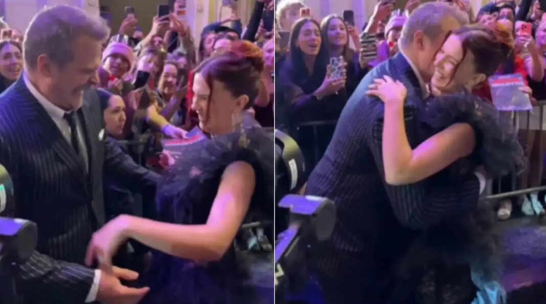 Στο Instagram, το Netflix δημοσίευσε βίντεο από τη στιγμή της άφιξής τους, όπου φαίνονται να αγκαλιάζονται μπροστά στους θαυμαστές της σειράς, έξω από τον κινηματογράφο.