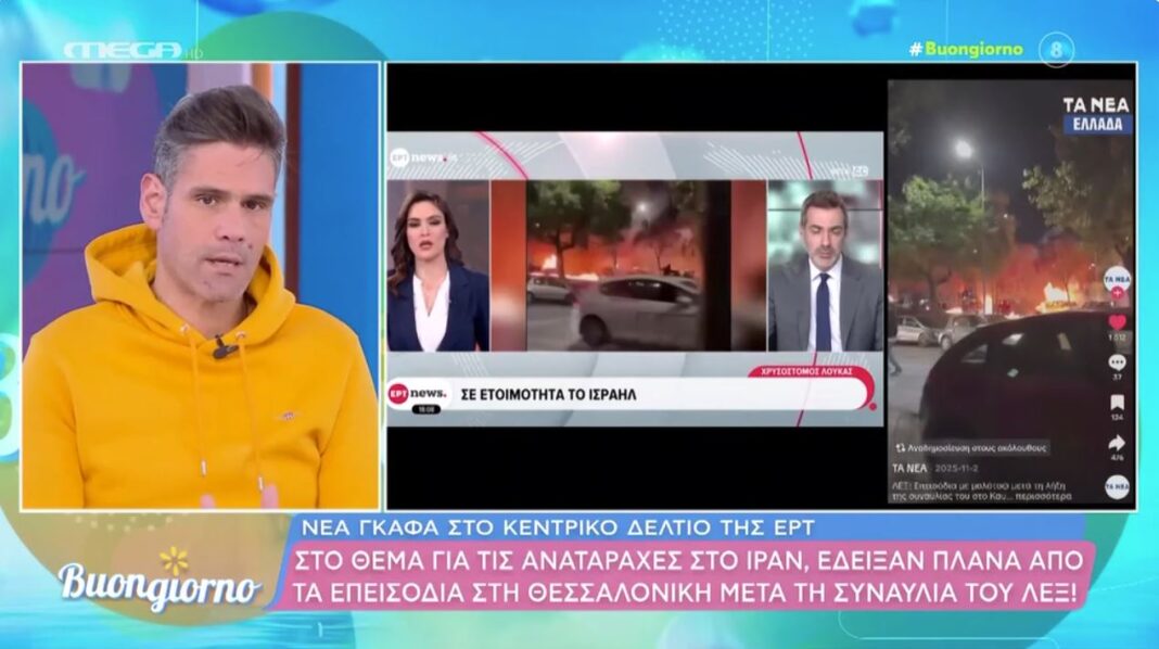 Σοβαρή γκάφα στο δελτίο ειδήσεων της ΕΡΤ όπου εμφανίστηκαν πλάνα από επεισόδια στη Θεσσαλονίκη αντί για γεγονότα στο Ιράν