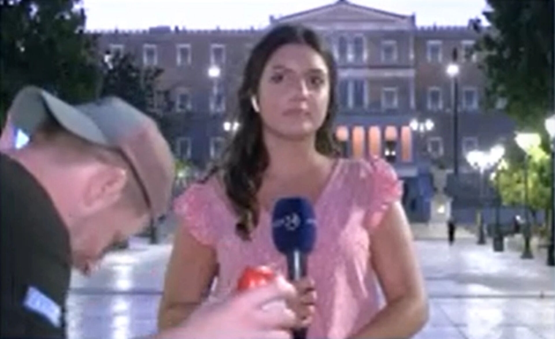 Μεθυσμένος στο Σύνταγμα μπήκε στο πλάνο και έβαλε δύσκολα στην ρεπόρτερ του Action 24 Αλεξάνδρα Μερακλίδη