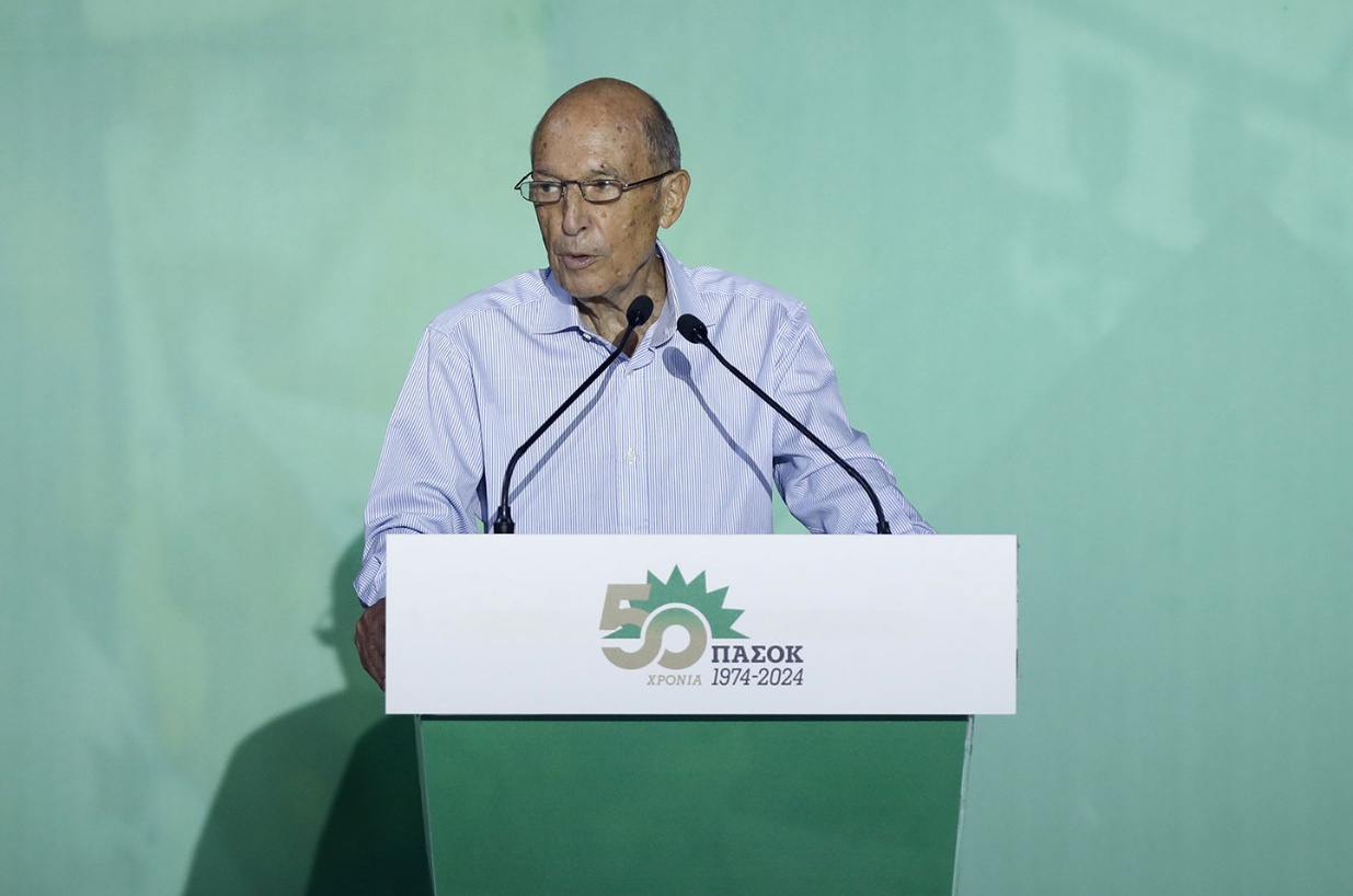«Κυρίες και κύριοι, αγωνιστές του ΠΑΣΟΚ. Σήμερα συμπληρώνονται 50 χρόνια από την ίδρυση του ΠΑΣΟΚ. Υπήρξα συνιδρυτής του ΠΑΣΟΚ την 3η του Σεπτέμβρη του 1974. Στην πορεία αυτή των 50 ετών, αντιμετωπίσαμε αντιξοότητες και προκλήσεις, αλλά καταφέραμε να βάλουμε τα θεμέλια για μια πιο δημοκρατική Ελλάδα, με μεγαλύτερη κοινωνική συνοχή και με ισχυρή παρουσία στην Ευρωπαϊκή Ένωση.
