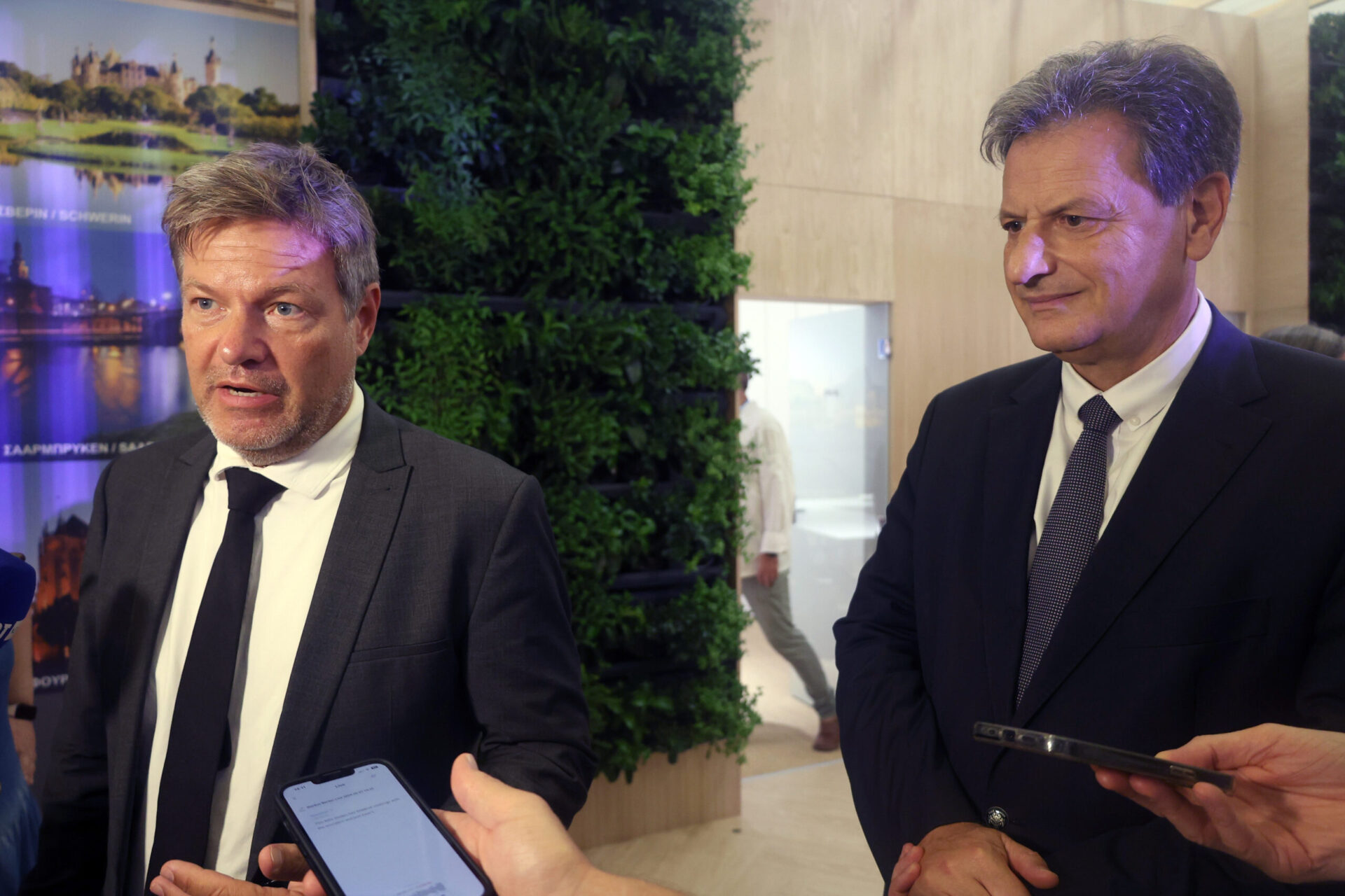 Από την πλευρά του, ο κ. Χάμπεκ υπογράμμισε ότι η κατανάλωση ενέργειας, αλλά και η κοινωνία ευρύτερα επηρεάζονται από υπερθέρμανση και συμπλήρωσε ότι «τα κλιματικά ζητήματα δεν είναι υποσημείωση της ιστορίας, αλλά η ιστορία πίσω από πολλές από τις ιστορίες του καιρού μας».Ανέφερε ότι οι δύο χώρες αντιμετωπίζουν τις ίδιες προκλήσεις στον τομέα της ενέργειας και ακολουθούν στρατηγικές, όπως η προώθηση των ανανεώσιμων πηγών.