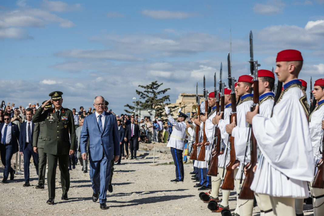 Ο Πρόεδρος της Δημοκρατίας, Κωνσταντίνος Τασούλας, παρέστη σήμερα στην έπαρση της σημαίας στον Ιερό Βράχο της Ακρόπολης και στη συνέχεια κατέθεσε στεφάνι στο Μνημείο του Αγνώστου Στρατιώτη, στο πλαίσιο του εορτασμού της 81ης επετείου της απελευθέρωσης των Αθηνών από τα στρατεύματα κατοχής.