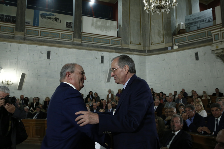 Οι πρώην πρωθυπουργοί Κώστας Καραμανλής και Αντώνης Σαμαράς, εκδήλωση προς τιμήν της πρώην Προέδρου της Βουλής Άννας Ψαρούδα Μπενάκη.