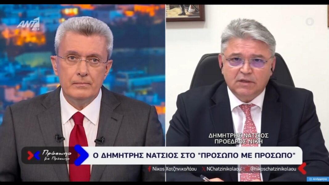 Παρέμβαση στην εκπομπή «Πρόσωπο με Πρόσωπο» του Νίκου Χατζηνικολάου, έκανε το βράδυ της Πέμπτης ο πρόεδρος του κόμματος «Νίκη», Δημήτρης Νατσιός. Ο κ. Νατσιός αναφέρθηκε μεταξύ άλλων στα χαμηλά ποσοστά του κόμματός του, δημοκοπικά, ενώ απάντησε και στο ενδεχόμενο συνεργασίας είτε με την Νέα Δημοκρατία είτε με το κόμμα του Αντώνη Σαμαρά.