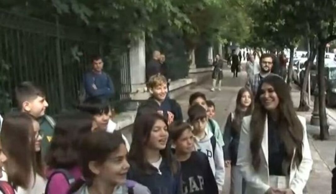 Η Αμερικανίδα πρέσβης συνάντησε μαθητές δημοτικού στην Ηρώδου Αττικού, χαιρετώντας και συζητώντας με παιδιά με εγκαρδιότητα και χαμόγελα