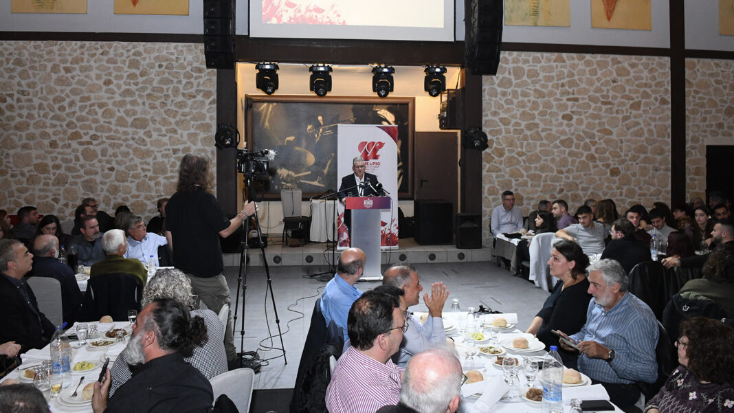 Κατηγόρησε την κυβέρνηση Μητσοτάκη και την αντιπολίτευση για αντιλαϊκές πολιτικές, αναφέρθηκε στα προβλήματα των αγροτών, την αυξημένη φορολογία και τις ανεπάρκειες στις συλλογικές συμβάσεις εργασίας.