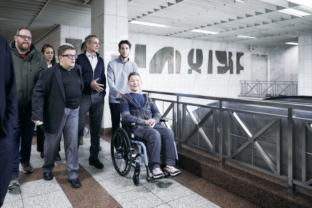 Ο πρωθυπουργός Κυριάκος Μητσοτάκης, συνοδευόμενος από υπουργούς, πραγματοποίησε διαδρομή στο Μετρό της Αθήνας με δύο άτομα με αναπηρία, χρησιμοποιώντας τη νέα πλαστική κάρτα αναπηρίας.